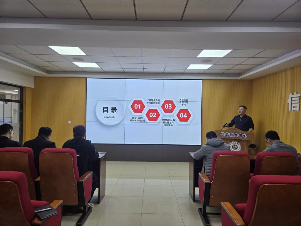 为明确新学期信息化工作方向,压实工作责任,推动学校信息化建设高质量发展,3月27日,信息技术中心召开2026年工作部署会。会议由中心主任胡任远主持,中心全体教职工参会,围绕“凝心聚力,开启新学期工作新篇章”主题,系统部署本学期4项核心工作任务,明确工作标准、时间节点和责任分工,确保各项工作落地落细、见实见效。