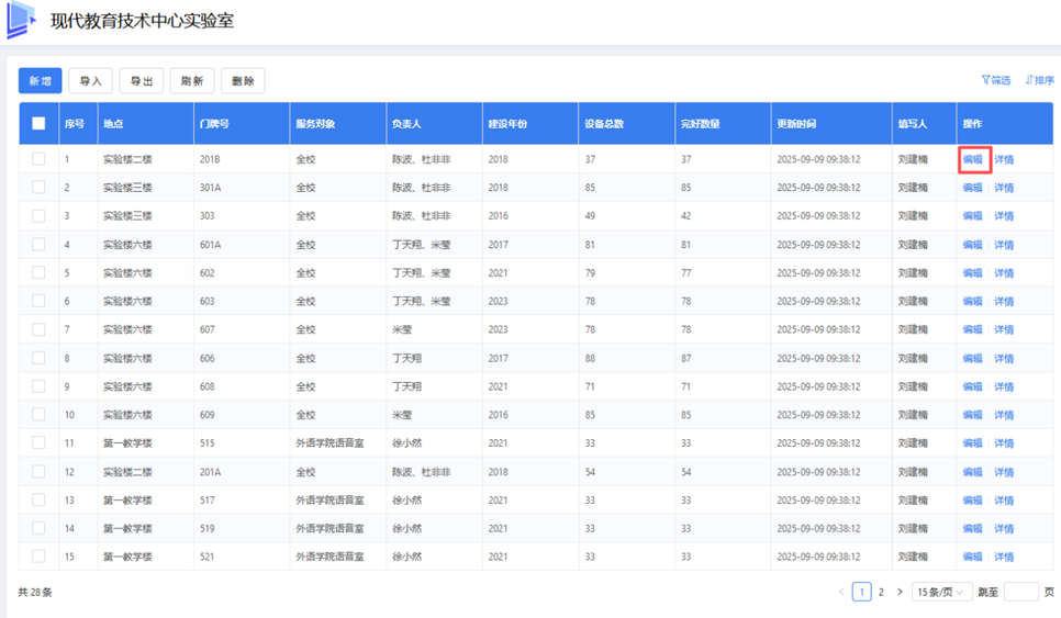 对于无业务系统支持的部门,一表通可以提供日常数据管理功能,便于存储和查询。如图3为利用一表通实现现代教育技术中心实验室信息的管理。